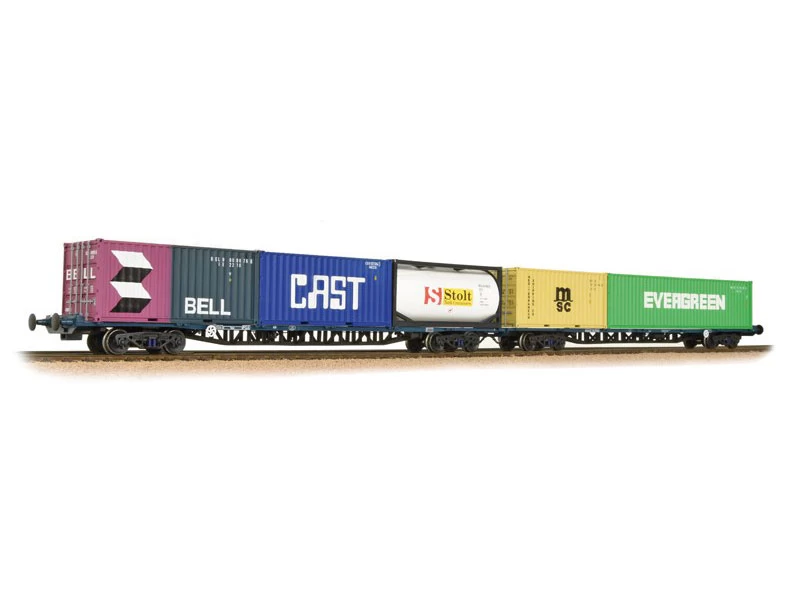 Bachmann Spur 00 16,5mm. Containerwagen Doppeleinheit. Ausgestattet mit NEM Kupplungsaufnahmen, Kurzkupplungskulisse, englischen Hakenkupplungen, abnehmbaren Containern.