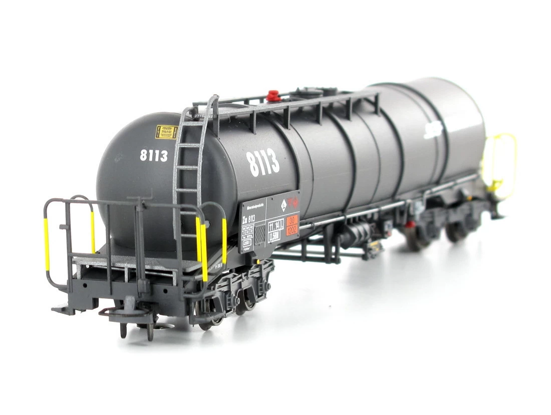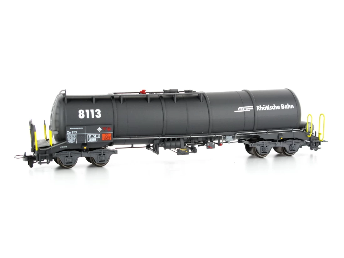 Modell: Spur H0m Gleichstrom. Knickkesselwagen Za 8113 der Rhätischen Bahnen.