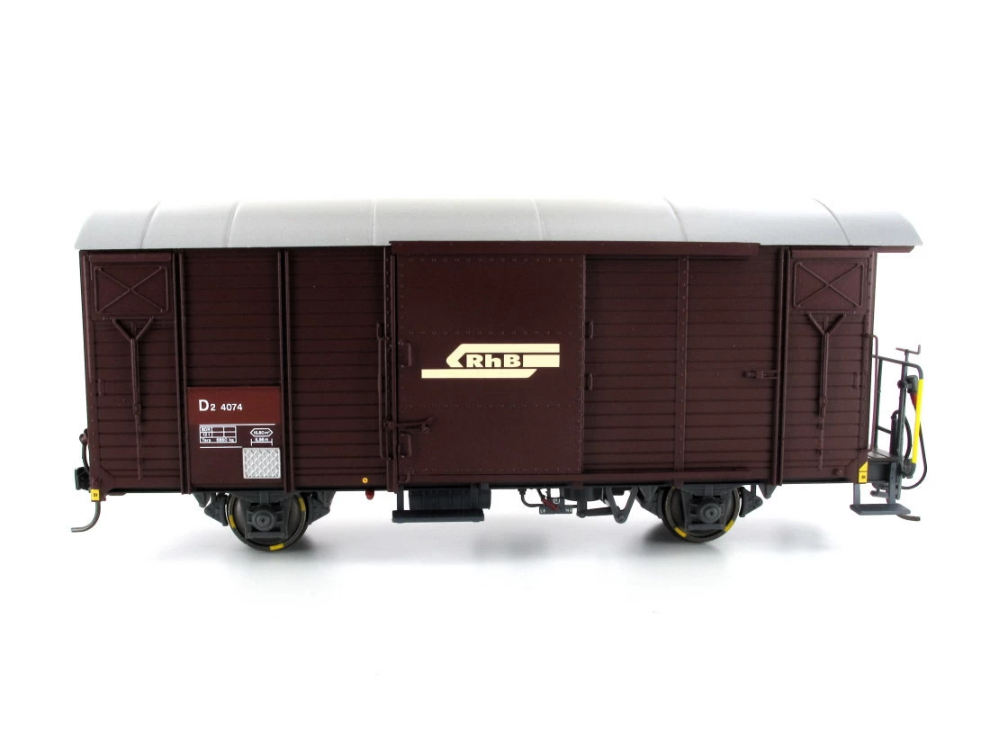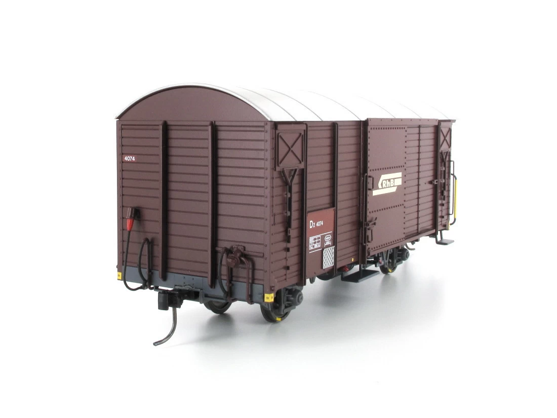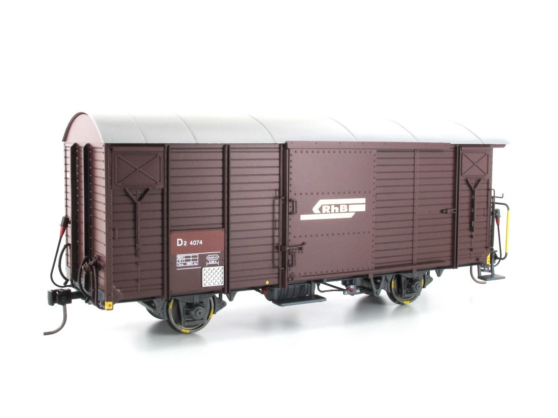 Modell: Spur 0m Gleichstrom. Zwischen 1911 und 1913 lieferten verschiedene Hersteller 115 gedeckte Güterwagen K1 mit 4,2 m Achsstand. 1948 begann die RhB, einem Teil dieser Fahrzeuge durch neue Aufbauten zu modernisieren. Mitte der 70er Jahre wurden viele weitere Wagen einem ähnlichen Modernisierungsprogramm unterzogen. Einige Fahrzeuge erhielten in der Blütezeit sogar Werbeaufschriften und prägten das Bild immer farbenprächtiger werdenden Güterzüge.