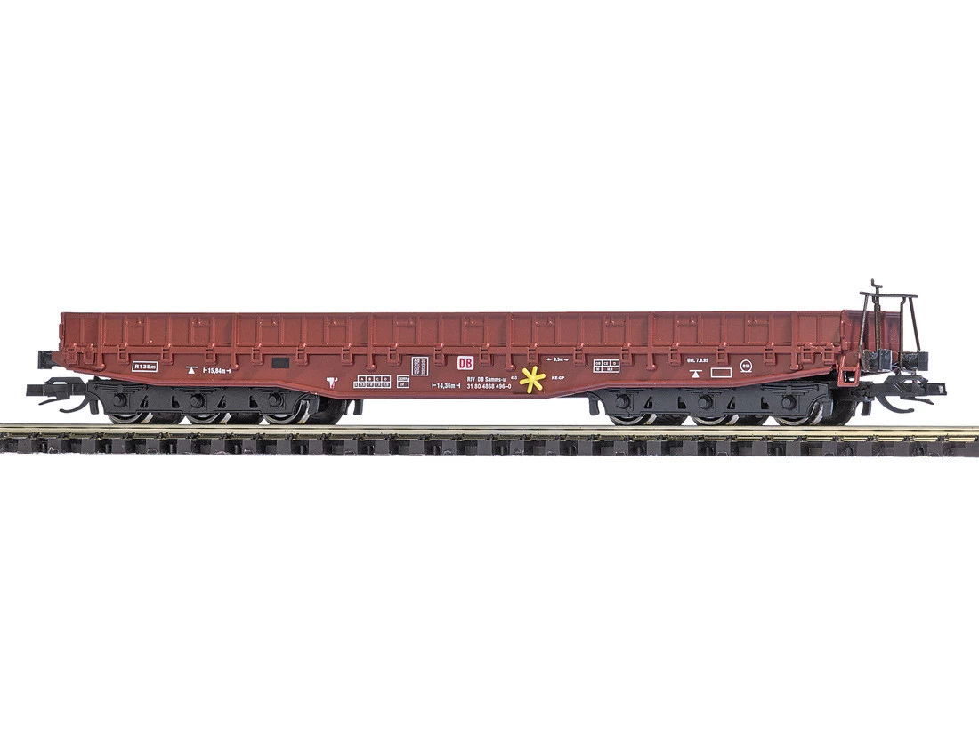 Modell: Spur TT. Die Waggons dienten der Beförderung u.A. von Kettenfahrzeugen (Truppentransport), schweren Maschinenteilen, Schüttgütern wie Erz usw. Um beim Beladen mit Fahrzeugen von einem zum nächsten Wagen fahren zu können, ließen sich die Geländer der Bremserbühnen herunterklappen. Die Flachwagen wurden von der Waggonbaufabrik Niesky an die Deutsche Reichsbahn geliefert. Noch heute sind sie teilweise bei der DB im Einsatz.