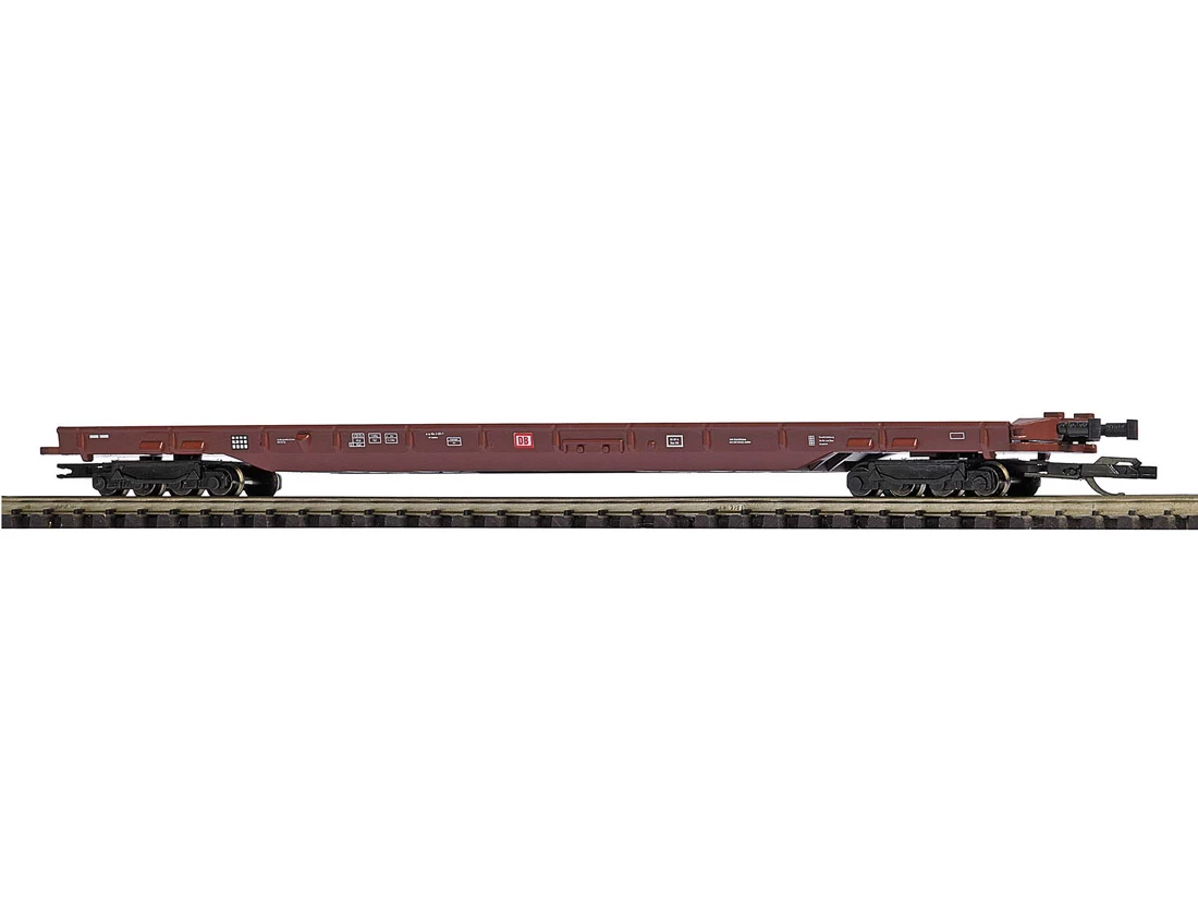 Modell: Spur TT DC. Der Güterwagen Saadkms 690 Rollende Landstraße der DB AG ist ein Flachwagen, der speziell für den Transport von LKWs entwickelt wurde. Mit diesem Wagenkonzept können Lastkraftwagen von einem Wagen der „rollenden Landstraße“ zum nächsten fahren, was eine effiziente und reibungslose Abwicklung des Gütertransports ermöglicht. Der Saadkms 690 verfügt über Spezialkupplungen, die es ermöglichen, die Wagen schnell miteinander zu „kurzkuppeln“. Somit können mehrere Wagen zu einem Zug verbunden werden, um größere Gütermengen zu transportieren. Der Güterwagen ist flexibel einsetzbar, da er mit beigefügten Pufferbohlen und Kupplungen sowohl als Endwagen als auch als Mittelwagen verwendet werden kann. Dadurch ist er perfekt zum Aufbau von Güterzügen geeignet und ermöglicht eine optimale Nutzung des vorhandenen Schienennetzes. Mit seiner robusten Bauweise und seinen speziell entwickelten Merkmalen ist der Güterwagen Saadkms 690 Rollende Landstraße der DB AG die ideale Wahl für den Transport von LKWs auf der Schiene jeder Modellbahn in Spur TT.