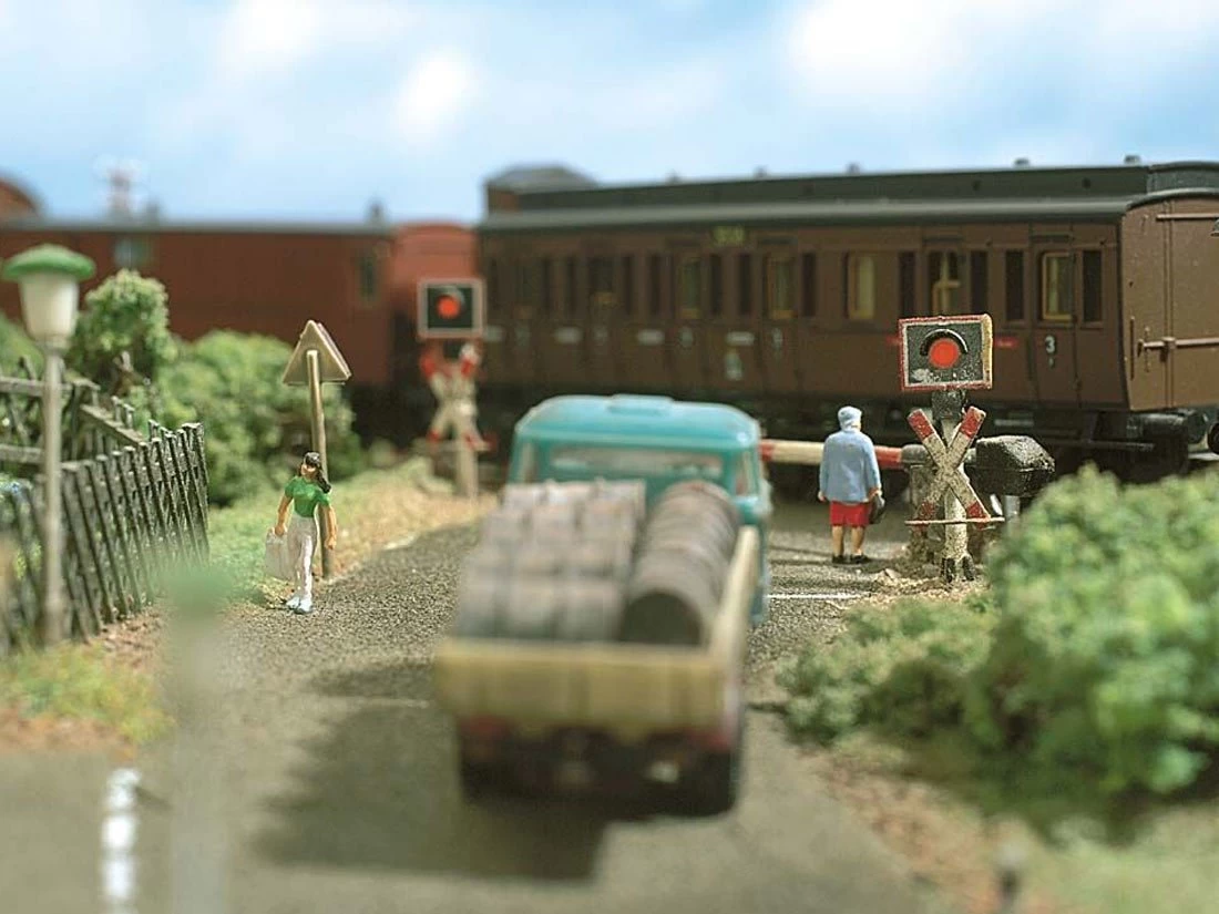 Modell: Spur TT. Komplett-Set: 2 Warnblinker und elektronische Blinkschaltung. Absolut maßstäblich in der Größe und vorbildgetreu in der Farbgebung. Eine neue elektronische Blinkschaltung und LEDs sorgen für wartungsfreien Dauerbetrieb. In Verbindung mit IR-Lichtschranke und Zeitschalter können die Warnblinker durch Zugannäherung automatisch eingeschaltet werden.