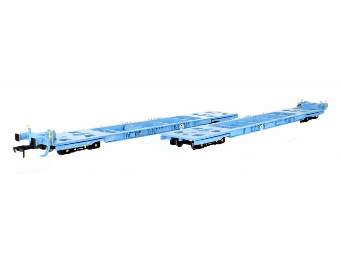 Modell: Spur H0/00. Inhalt: Doppeleinheit ohne Container. ausgestattet mit: Finescale-Rädern, NEM Kupplungsaufnahme, fester Mittelkupplung.