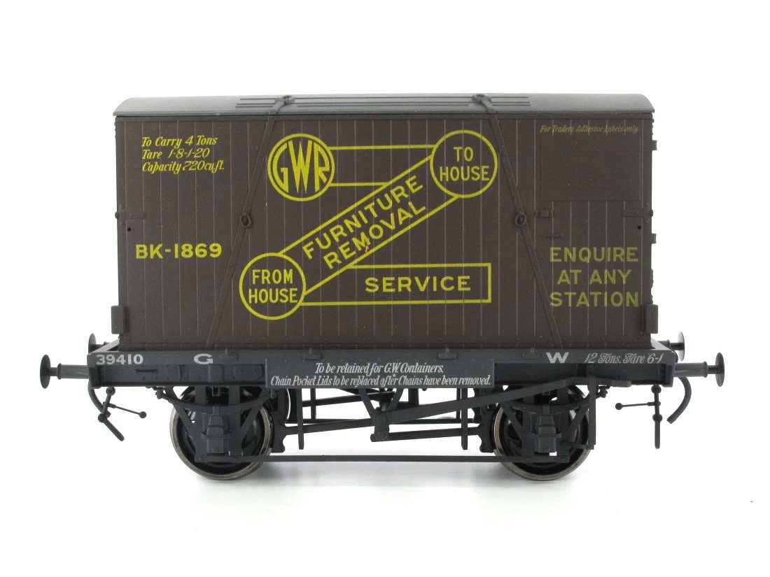 Modell: Spur 0. Ausgestattet mit: metallgelagerten Finescale-Rädern, federnden Kupplungshaken und Puffern, Ketten für vorbildberechtes Kuppeln, abnehmbarem Container.