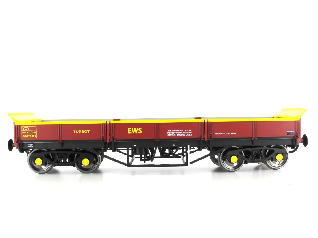 Modell: Spur 0 Gleichstrom. Ausgestattet mit metallgelagerten Finescale-Rädern, federnden Kupplungshaken und Puffern, Ketten für vorbildberechtes Kuppeln.