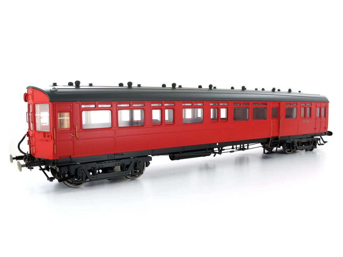 Modell: Spur 0 Gleichstrom. Steuerwagen nach UK-Vorbild zum Betrieb mit britischen Lokomotiven. Ausgestattet mit Inneneinrichtung, metallgelagerten Finescale-Rädern, federnden Kupplungshaken und Puffern, Ketten für vorbildberechtes Kuppeln, englische Betriebsanleitung.