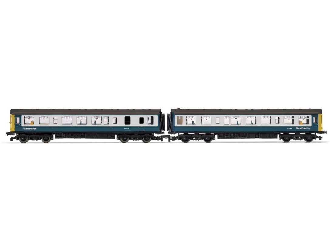 Modell: Spur 00 Gleichstrom. Modell eines britischen Dieseltriebwagens der Baureihe 110 der British Rail (Britische Staatsbahnen). Es handelt sich um einen zweiteiligen Zug in der blaugrauen Farbgebung der BR.