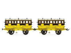 Modell: Spur 00 Gleichstrom. Set mit drei historischen Eisenbahnwagen. Klasse-Wagen der Liverpool and Manchester Railway (L&MR) namens „Wellington“ und „Globe“ sowie einen speziellen Salonwagen für Queen Adelaide, die Tante von Queen Victoria. Der 1842 gebaute Salonwagen ist der älteste erhaltene Königswagen.