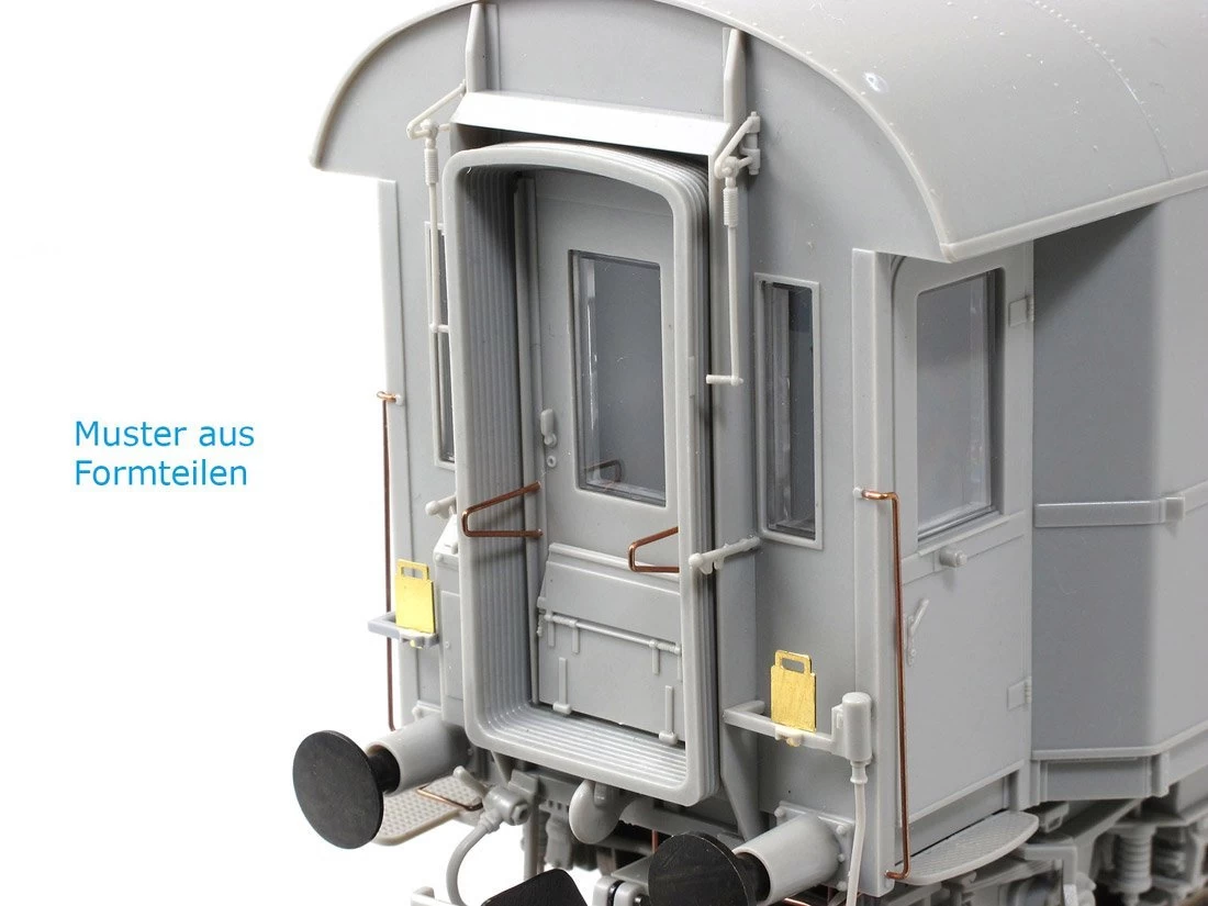 Ausgestattet mit Metallradsätzen, konstanter, flackerfreier Innenbeleuchtung, im Digitalbetrieb schaltbar, Stromabnahme in den Achslagern, dadurch keine Beeinflussung der Laufeigenschaften, Spurkranzhöhe kleiner 1,2mm, Inneneinrichtung, automatische Kupplung mit Kurzkupplungskulisse, Kupplungsnormschacht, Federpuffer, mit originaler Schraubenkupplung nachrüstbar, dunkel vernickelte Radsätze. Der Wagen wird mit einem montierten „langen“ und einem montierten „kurzen“ Faltenbalg geliefert. Zusätzlich ist ein „langer“ Faltenbalg beigelegt.