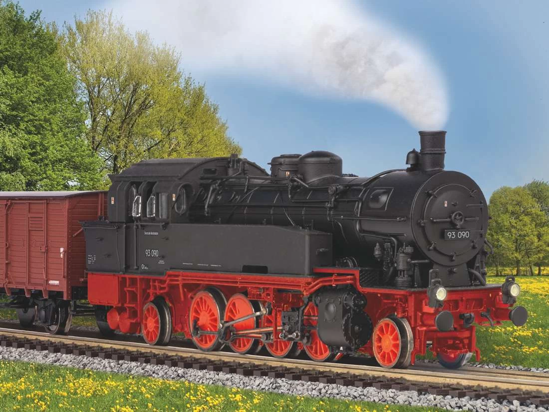 Modell: Spur TT Gleichstrom. Komplette Neukonstruktion der Dampflokomotive BR 93 im Maßstab 1:120. Die Analogversion verfügt über eine Next18-Schnittstelle für den unkomplizierten Einbau eines Digital- ode Sound-Decoders. Für die Soundnachrüstung steht zudem Platz für einen Lautsprecher mit maximaler Membranfläche zur Verfügung.