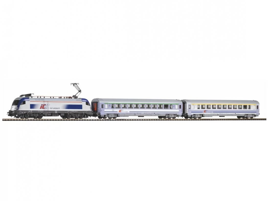Spur H0 Gleichstrom. Der Einsatz dieses digitalen Start-Sets mit der starken Elektrolok ermöglicht die Nachbildung eines typischen Personenzuges von PKP IC und besteht aus einer Lokomotive Taurus mit Piko Decoder und zwei IC Personenwagen. Das Piko A-Gleis mit Bettung, das für Einsteiger und Modellbahn-Profis gleichermaßen entwickelt wurde, eignet sich ideal für einen problemlosen fliegenden Auf- und Abbau auf dem Fußboden oder Teppich und verspricht durch die qualitativ hochwertige Ausführung der Bettung eine hervorragende Gleislage und garantiert langanhaltende Freude mit dem Set! Das Set enthält: 1 Elektrolok, 2 Personenwagen, 12 gebogene Gleise, 5 gerade Gleise, 1 gerades Gleis mit Anschluss-Clip, 1 Anschluss-Clip, 1 Gleisanschlusskabel, 1 SmartControl Light Basis-Set und 1 Bedienhandbuch.