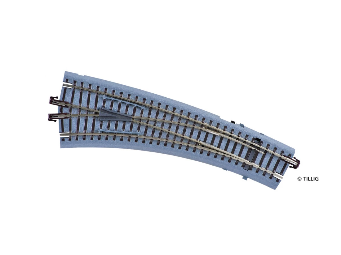 Modell: Spur TT. Gleis mit Bettung IBW links Innenbogenweiche Handantrieb 15 Grad braun.